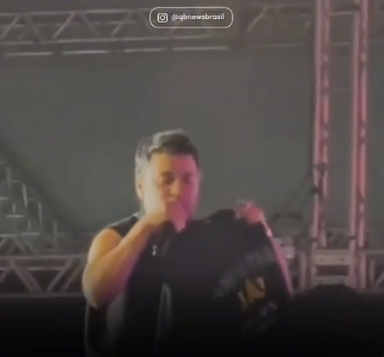 Um vídeo que circula nas redes sociais mostra Zezé di Camargo empunhando a camiseta enquanto cantava a música Flores Em Vida, sucesso da dupla com Luciano. Nas redes sociais, internautas se manifestaram sobre o caso.