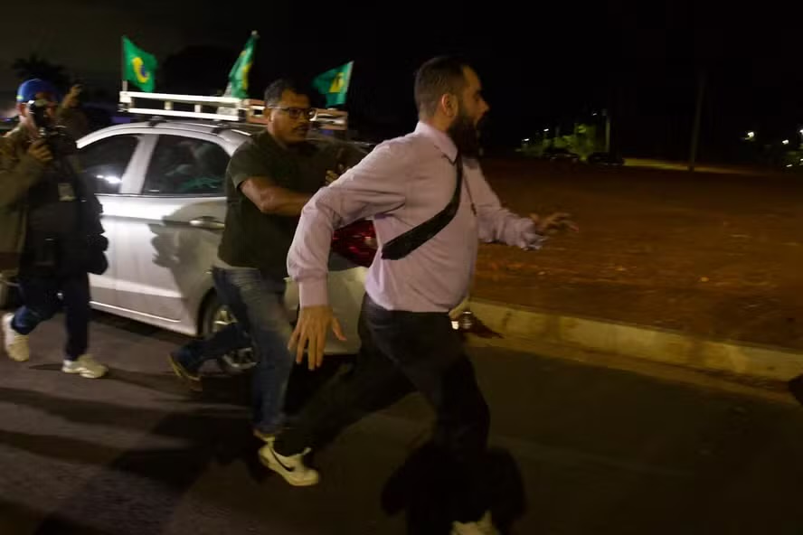 Uma vigília organizada por apoiadores do ex-presidente Jair Bolsonaro (PL) terminou em tumulto na noite deste sábado (22), em Brasília. O evento, realizado em uma área pública próxima ao condomínio onde a família Bolsonaro mora, durou pouco mais de uma hora e acabou marcado por agressões e intervenção da Polícia Militar.