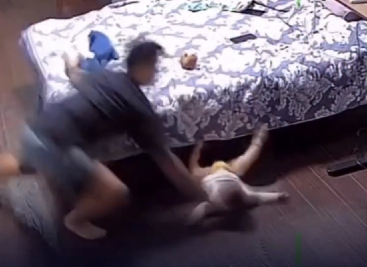 Um vídeo captado por uma câmera de segurança mostra o instante em que um menino quase sofre um acidente dentro de casa. Ele estava sobre a cama junto ao pai quando perdeu o equilíbrio e começou a cair para trás.