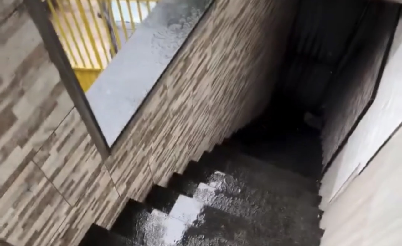 Um homem resolveu gravar um vídeo para mostrar aos parentes como uma escada se torna perigosa em dias de chuva, mas acabou protagonizando a própria demonstração. Enquanto filmava, ele escorregou e desceu todos os degraus até o final.
