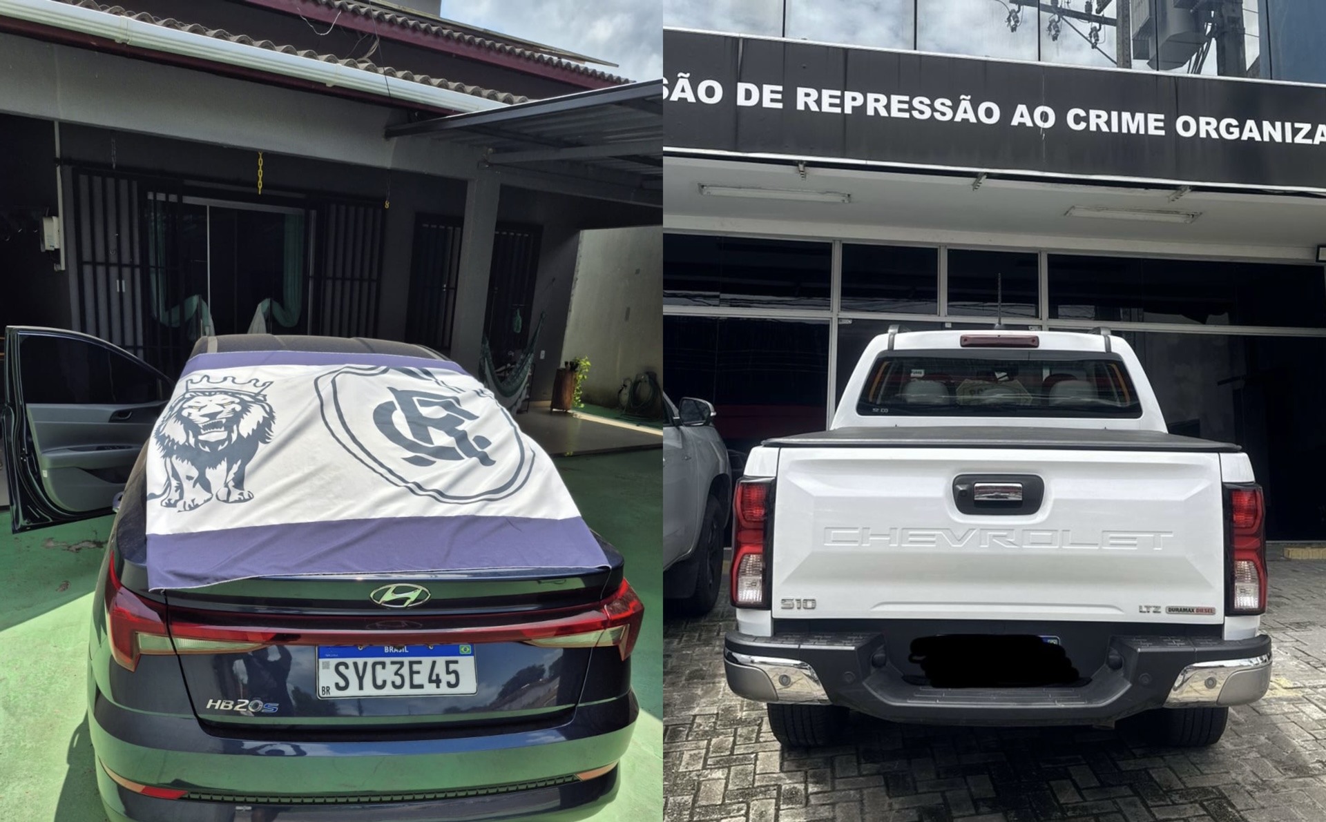 Durante a abordagem, os policiais apreenderam dois carros de alto valor, uma caminhonete S10 modelo 2026, avaliada em cerca de R$ 300 mil, e um HB2OS, estimado em R$ 80 mil.