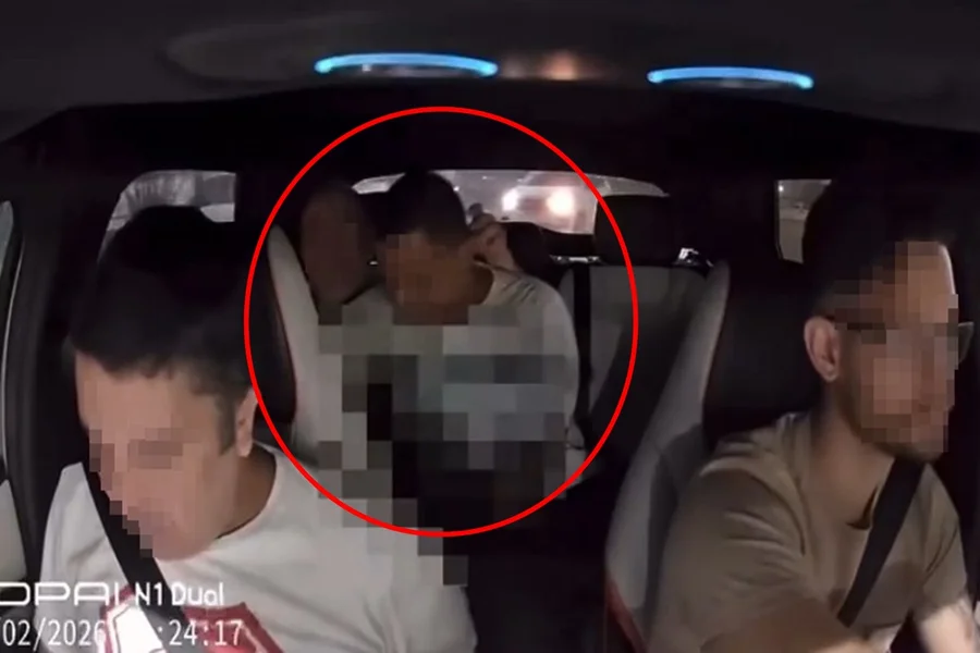 Um dos homens que havia solicitado a viagem reagiu de forma agressiva ao pedido do motorista e iniciou a violência física contra o condutor, que saiu do veículo visivelmente revoltado.