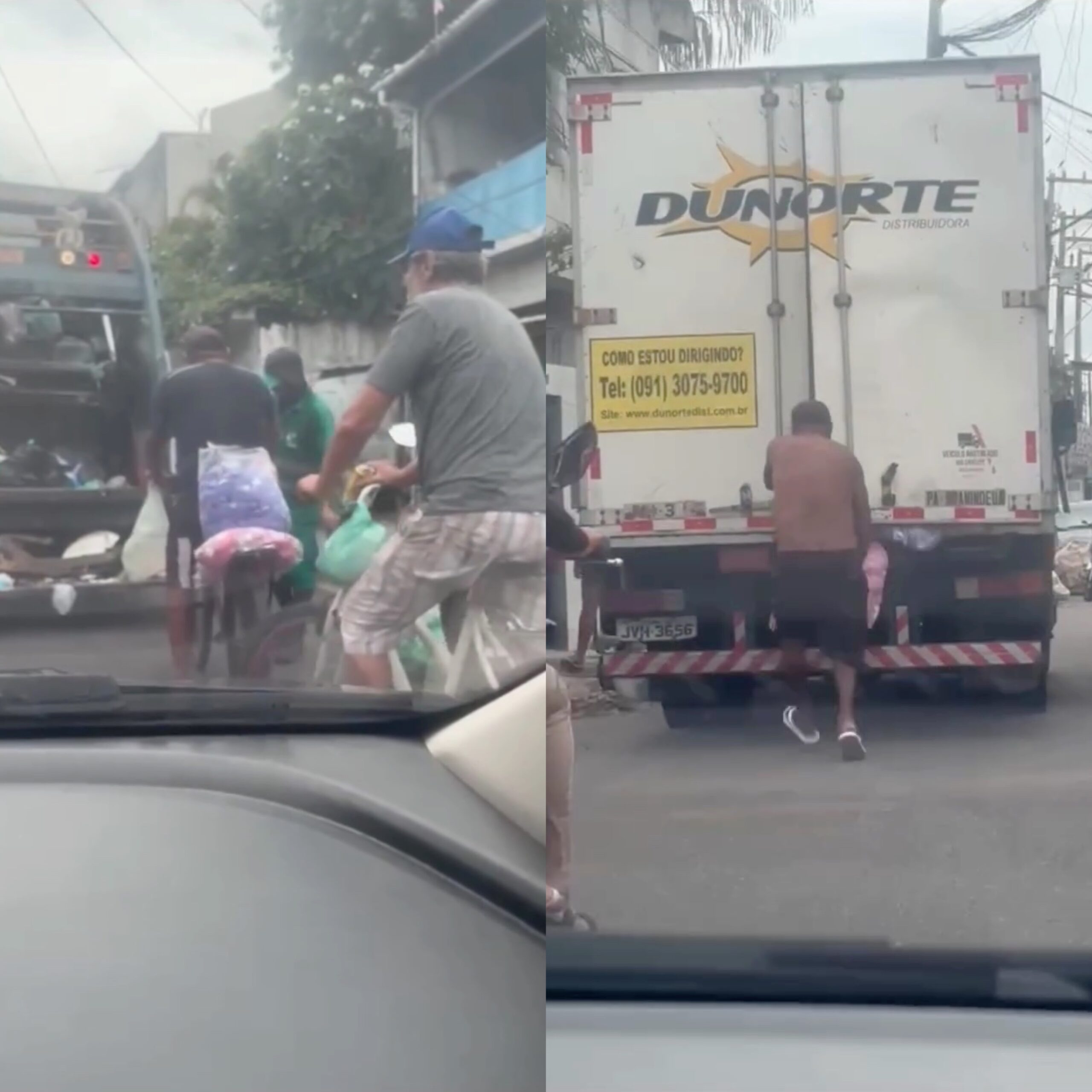 Um furto inusitado e marcado pela ousadia foi registrado na manhã desta sexta-feira (6), no bairro do Jurunas, em Belém. Um homem foi flagrado correndo atrás de um caminhão de distribuidora em movimento para furtar produtos do compartimento traseiro do veículo.