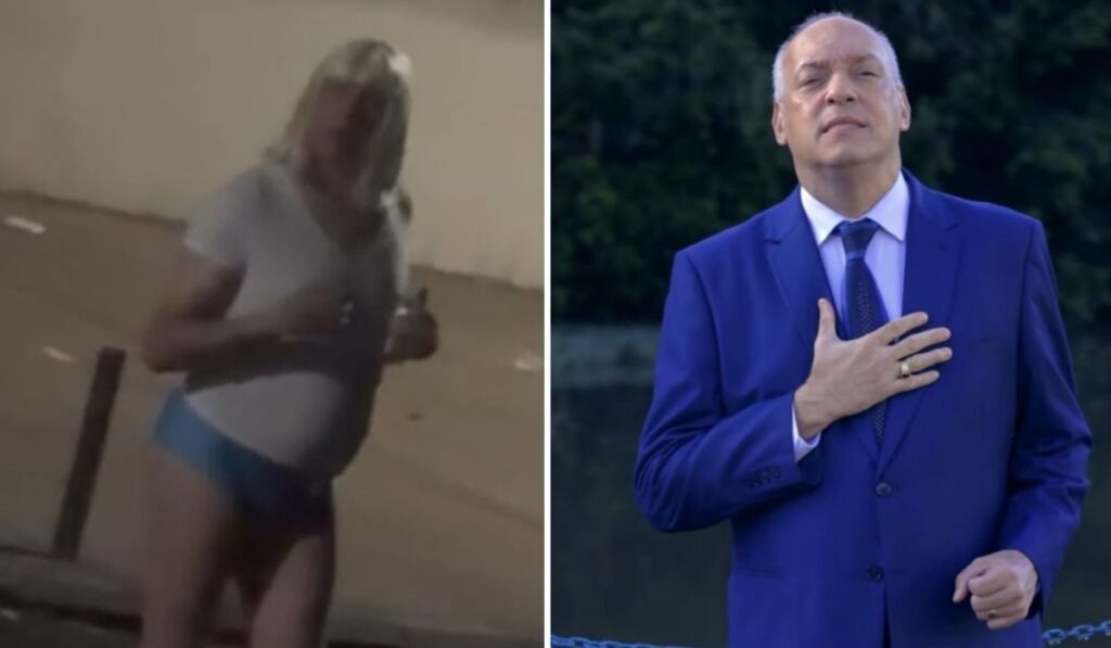 O primeiro registro do “pastor de calcinha” veio a público em 11 de agosto de 2025. Na ocasião, ele apareceu usando blusa branca, peruca loira e peça íntima azul enquanto caminhava próximo a um bar.