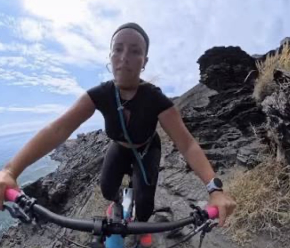 Professora grava momento em que quase cai de penhasco durante trilha de bicicleta