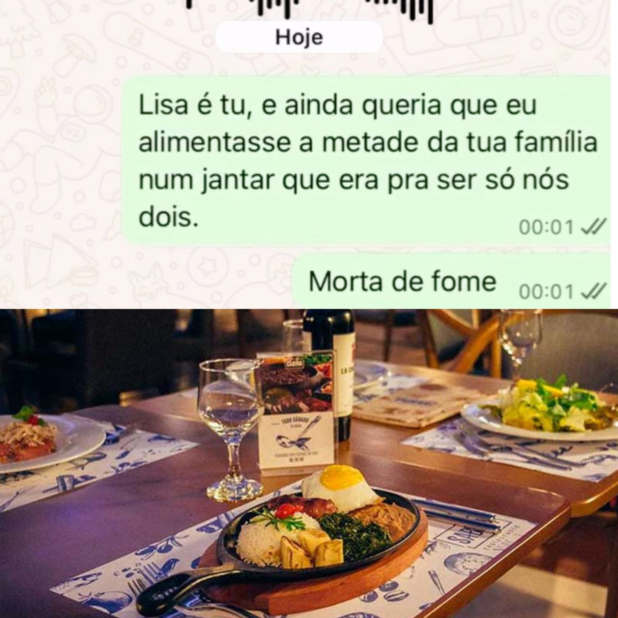 Já no restaurante, todos passaram a fazer pedidos normalmente. Pratos, bebidas e sobremesas começaram a chegar à mesa enquanto, segundo o homem, a conta aumentava cada vez mais.