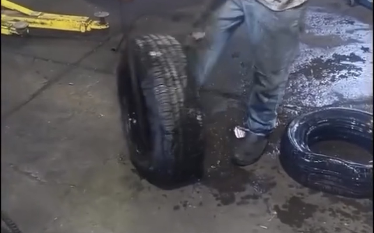 Durante fiscalização, agentes flagraram suspeitos utilizando um método improvisado para tentar burlar o controle: vários pneus foram encaixados uns dentro dos outros, formando um volume compacto com o objetivo de dificultar a identificação da carga irregular.