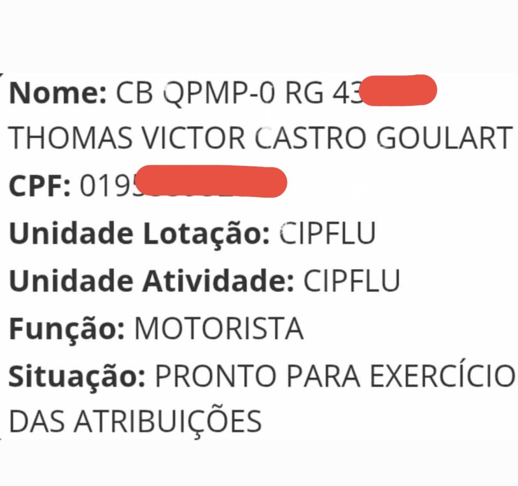 Um policial militar do Pará, identificado como THOMAS VICTOR CASTRO GOULART, lotado na CIPFLU, estaria atuando como motorista e segurança particular da secretária municipal Bruna Lorrane, em Belém.